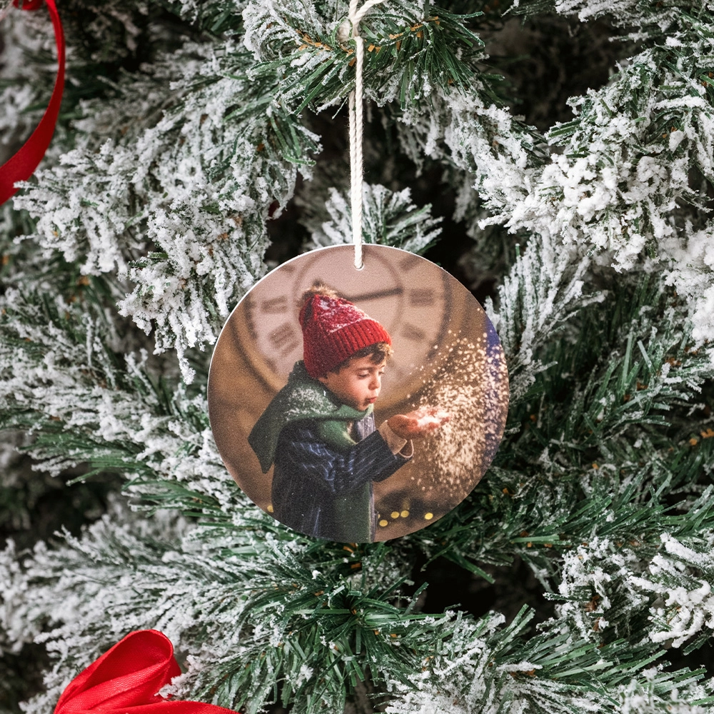 Los adornos personalizados para el árbol de Navidad con fotografías son ideales para quienes desean darle un aire emotivo y original a su árbol. Disponibles en materiales como acrílico blanco o transparente, y en formas clásicas como bola, estrella, copo de nieve, árbol, regalo y campana, cada pieza se personaliza mediante impresión UV para un acabado de alta calidad. Con tamaños de 8×8 cm o 10×10 cm, estos adornos no solo decoran, sino que también cuentan historias a través de tus fotos familiares. Una opción perfecta para compartir la alegría de las fiestas con detalles llenos de significado.