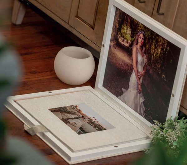 Descubre nuestra caja premium de madera forrada con portada interior personalizada. Elige materiales, tipografía y texto para la ventana. Acabado en blanco puro. Tamaños 30×30 y 40×30 cm. La presentación definitiva para tu álbum.