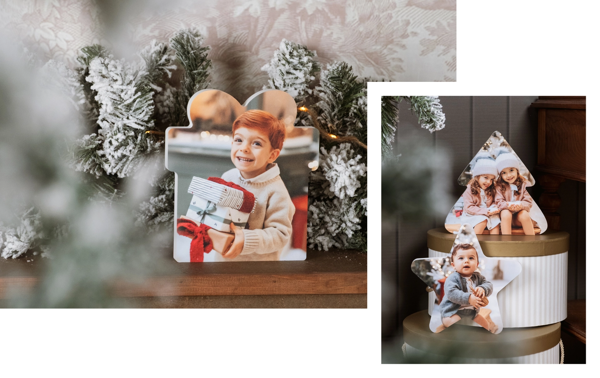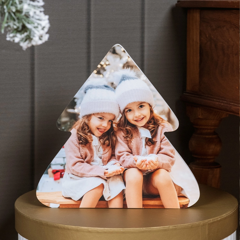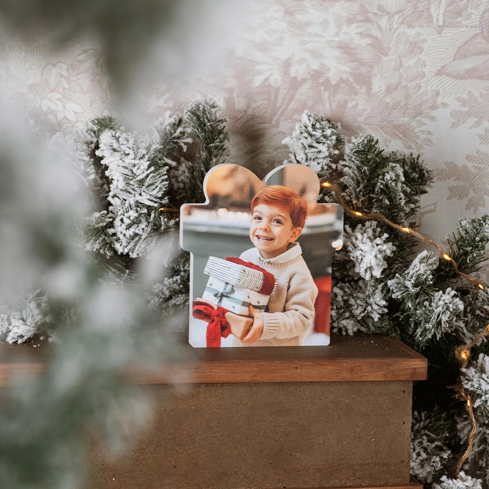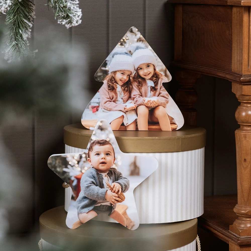Las figuras de Navidad personalizadas con foto son un regalo lleno de ternura y originalidad para estas fiestas. Fabricadas en madera o PVC, con impresión UV en uno de los lados, destacan por su diseño cuidado y acabado elegante. Disponibles en diferentes formas navideñas —casa, tren, tren con vagones, estrella, gorro de Navidad, árbol, regalo, campana y trineo—, son perfectas para decorar el hogar y revivir momentos especiales en familia. Con un tamaño aproximado de 15×20 cm, estas figuras se convierten en recuerdos emotivos y decorativos, ideales para regalar o para personalizar tu propia Navidad.