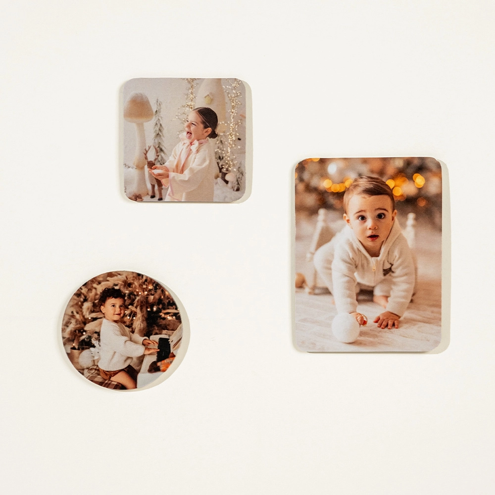 Los imanes navideños personalizados con fotos son un detalle perfecto para regalar en estas fiestas. Disponibles en sets de 9 a 12 unidades, según formato (cuadrado, circular o rectangular), cada imán se imprime en papel couché plastificado matte 170grs con tecnología de impresión UV, lo que garantiza colores vibrantes y durabilidad. Son fáciles de colocar en superficies metálicas como neveras o tableros, permitiendo que tus recuerdos estén siempre a la vista. Un regalo económico, práctico y cargado de emoción.