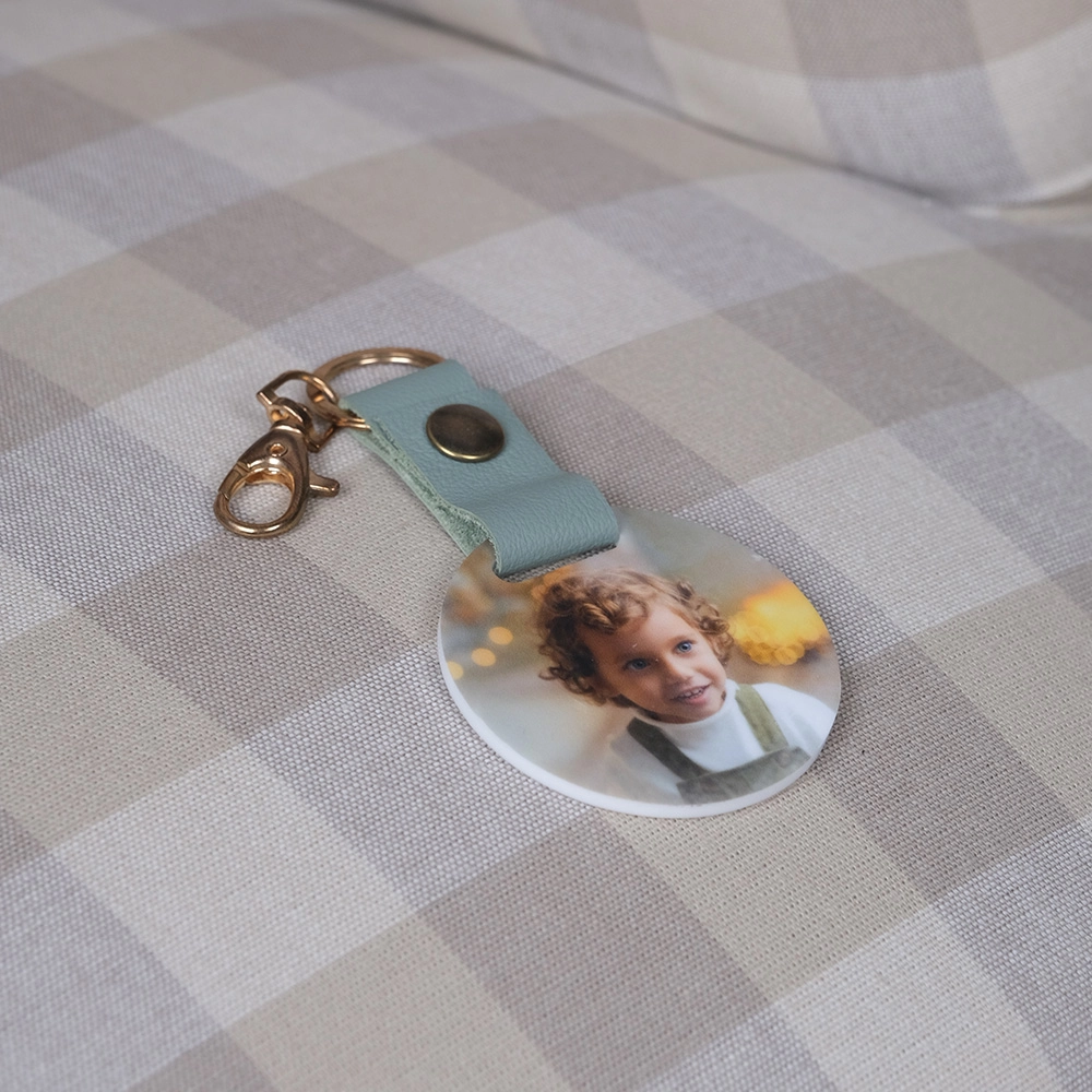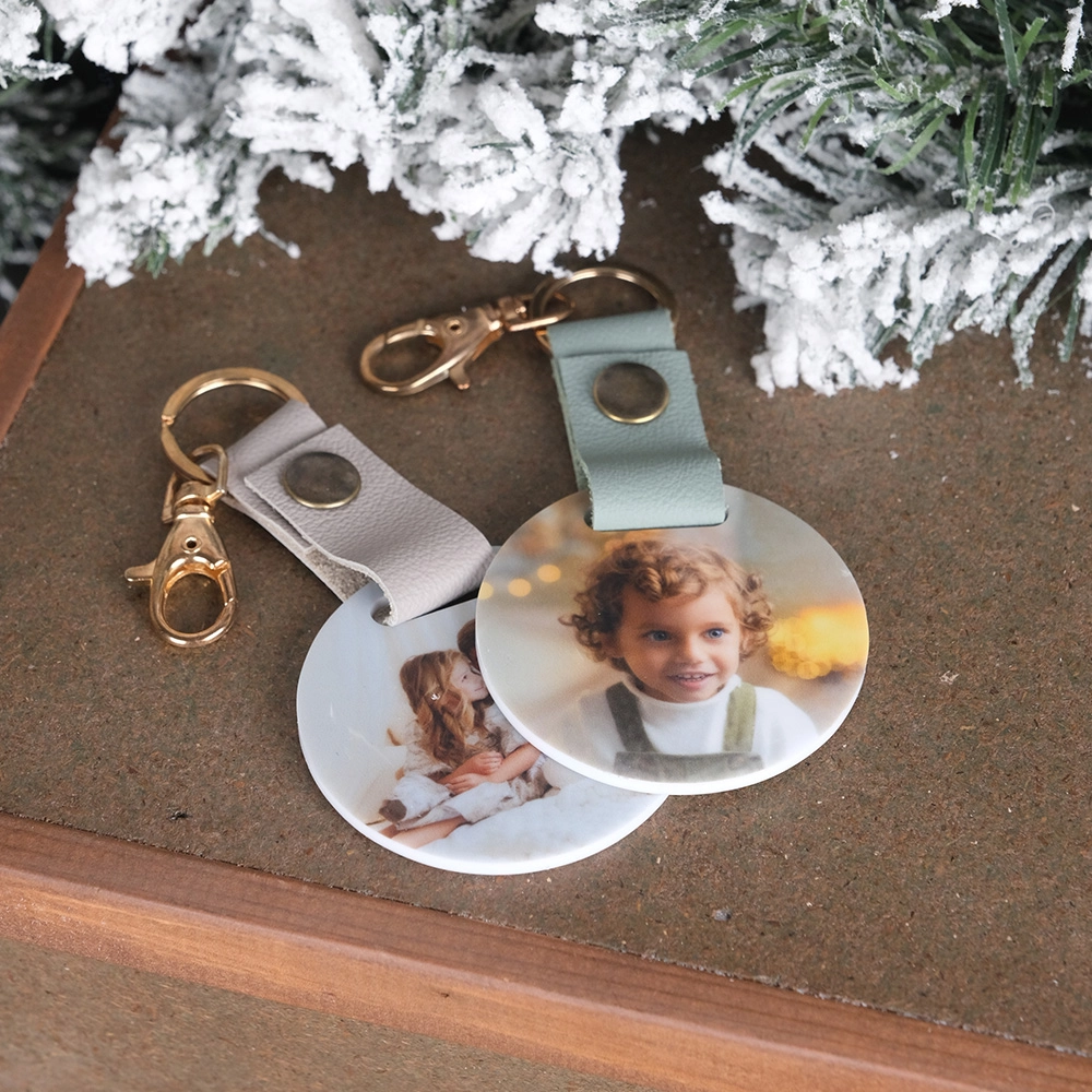 El llavero de Navidad personalizado con fotografía es el detalle perfecto para unir practicidad y emoción en estas fiestas. Fabricado en acrílico blanco con broche dorado y cordón de cuero toscano disponible en varios colores, este accesorio combina calidad y diseño. Con formato 6×6 cm, permite personalizarse con una foto especial que acompañará siempre a quien lo reciba. Es un regalo funcional y elegante que transmite cercanía y cariño, ideal para regalar a familiares, parejas o amigos durante la Navidad.