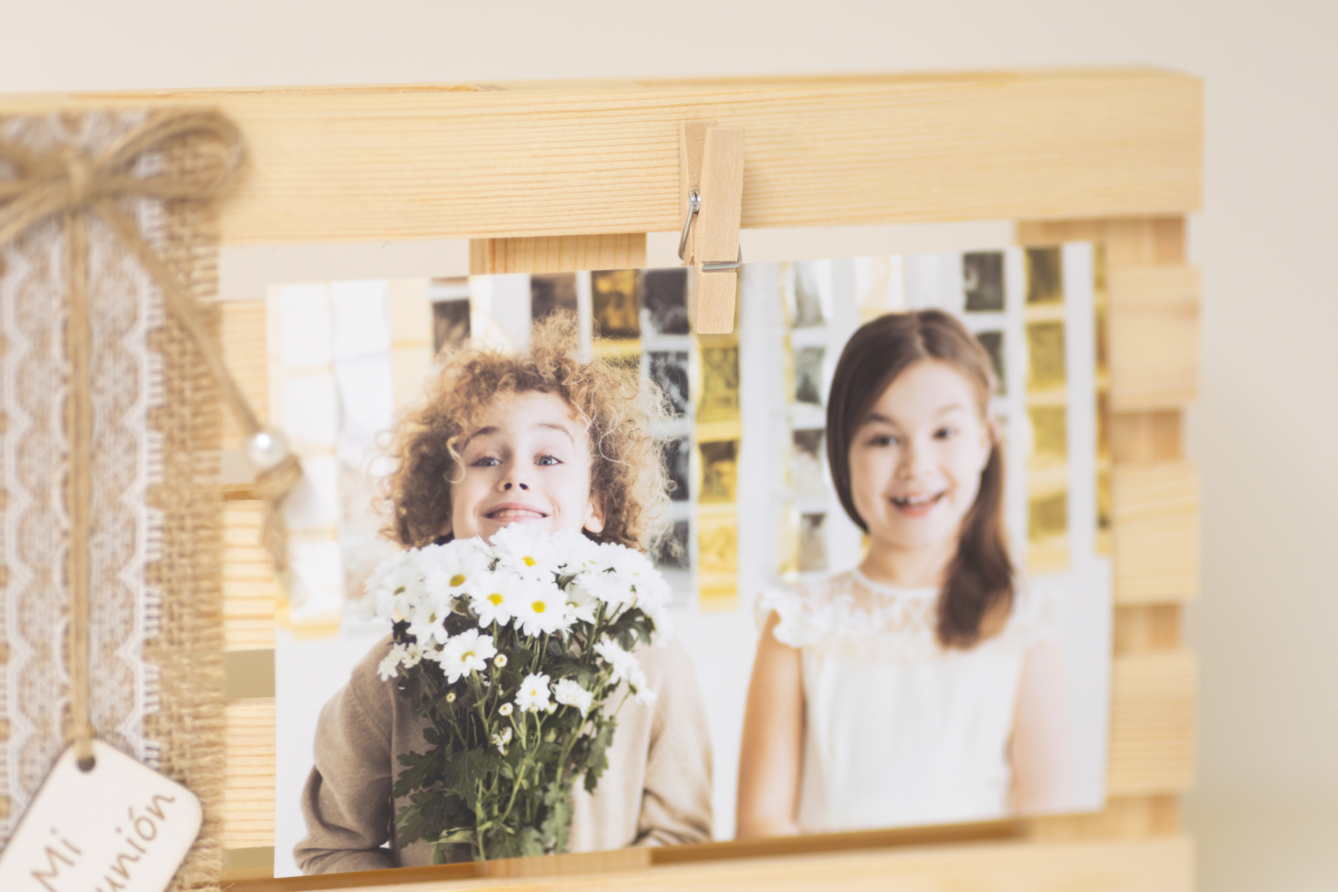 No guardes la foto de la Comunión en un cajón. Enmárcala en un pedazo de tradición, personalízala con su nombre y cuélgala como el tesoro que es.