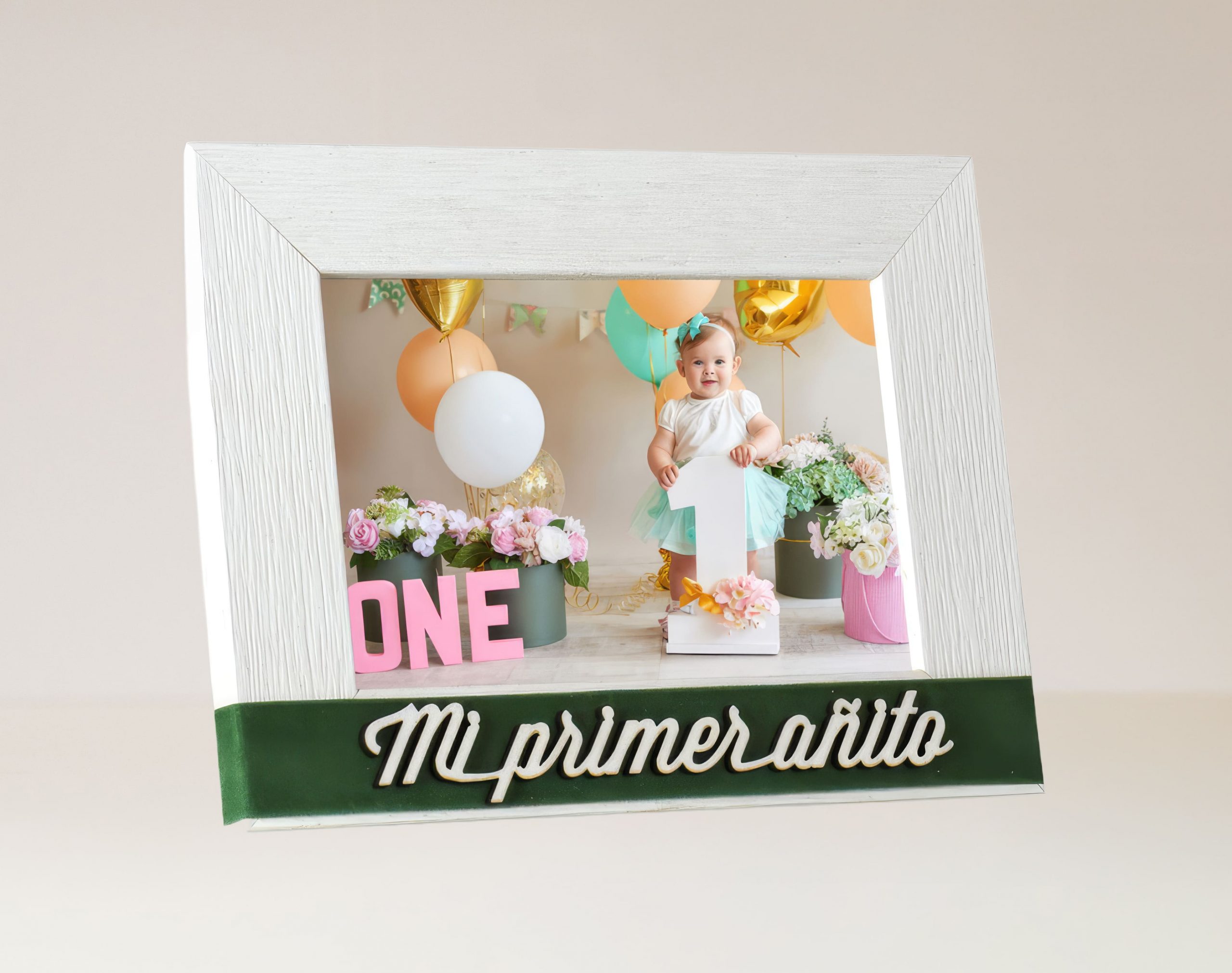 No celebres solo con un pastel. Inmortaliza el primer gran logro con un marco que lleva su nombre y dice «Mi Primer Añito». Un regalo que crecerá en valor sentimental con el tiempo.