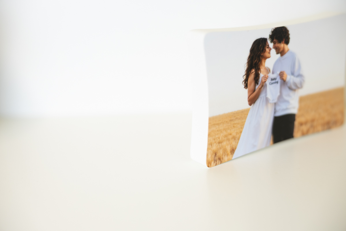 El Taco Pergamino personalizado con foto, disponible en PVC o madera, tiene un grosor de 19 mm y un elegante acabado mate. Su diseño exclusivo simula la forma de un pergamino, brindando un toque clásico y sofisticado a tus recuerdos. Incluye un porta PVC o madera para facilitar su exposición, convirtiéndolo en una pieza única para decorar cualquier espacio o como un regalo personalizado y especial.